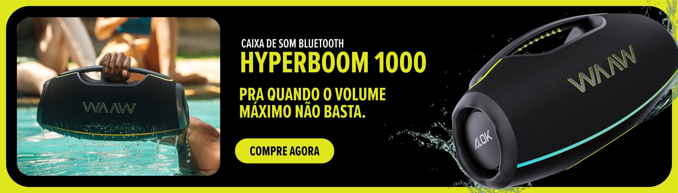 Com a WAAW HYPERBOOM 1000, a música não para após o play.