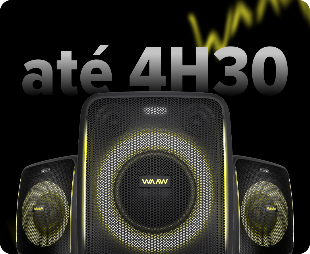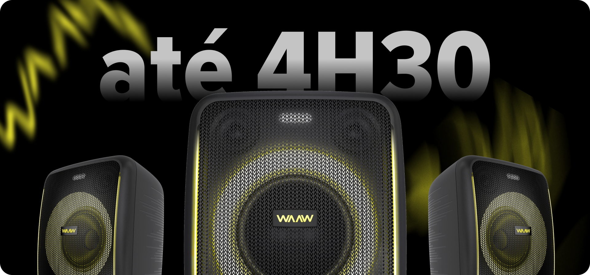 A Caixa de Som WAAW BEAT 1000 garante autonomia para sua festa não parar por até 4h30,com apenas uma recarga.Dê adeus às tomadas e aproveite as melhores música com a sua galera.