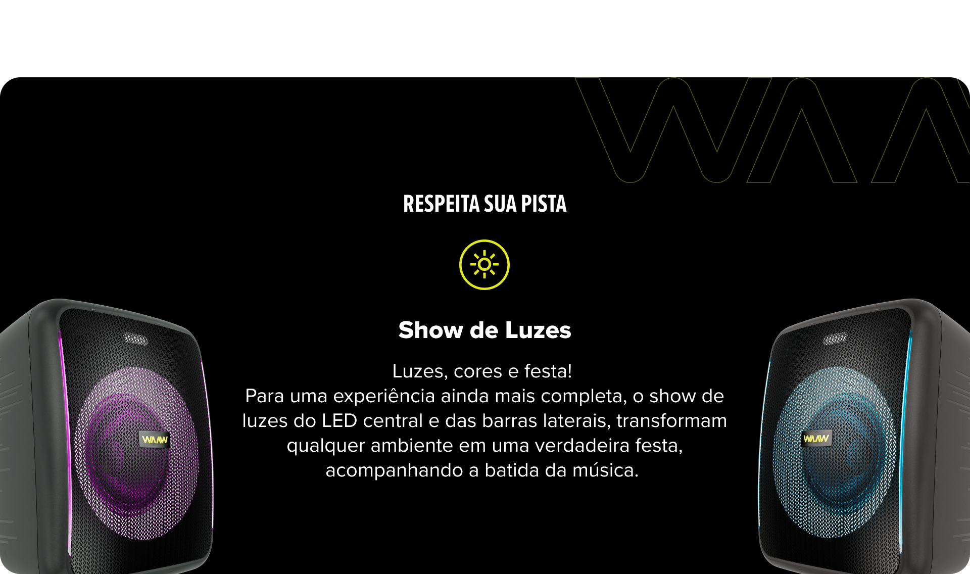 Com a Caixa de Som WAAW BEAT 1000, suas músicas quebram barreiras e ganham vida em casa, em festas, ou onde você estiver.