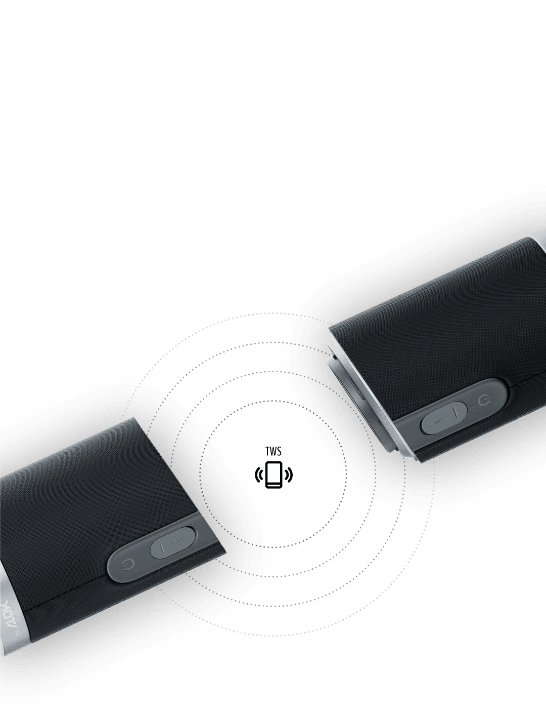 Entre em sintonia sem sair do seu ritmo. A caixa de som US 200 DUO pode reproduzir som separadas ou como uma única caixa de som, ideal para mergulhar nas suas playlists com a sensação do som 360° e ter seu #momentoWAAW.