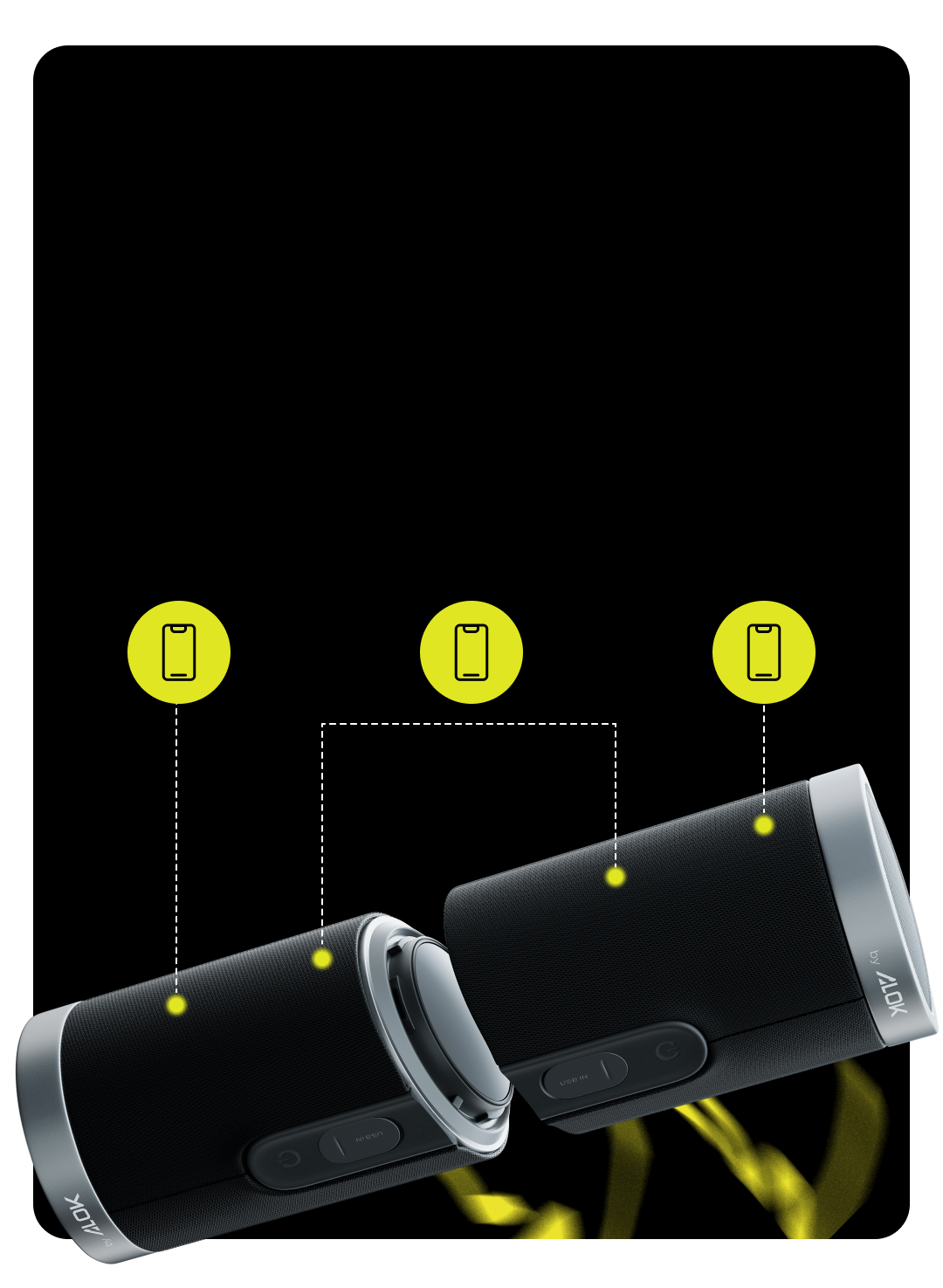 Quando combinadas criam a sensação de som 360°. Posicione cada lado em pontos distintos para que possa ouvir o som em todas as direções e aproveitar o melhor da sua música.