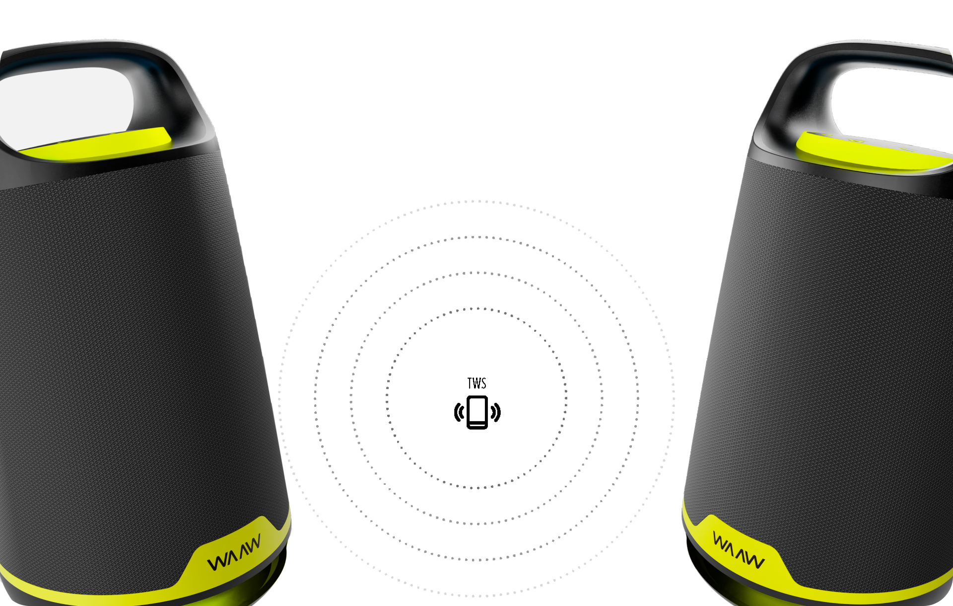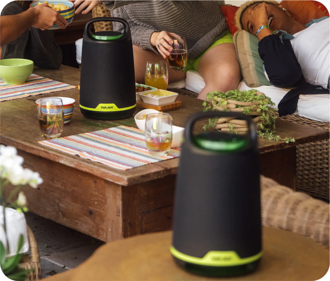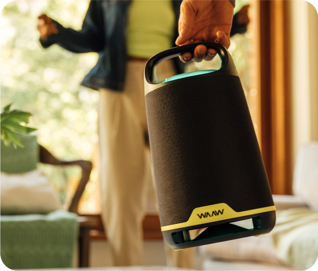 De longa duração, com apenas uma recarga, a bateria da WAAW BOOM 200 reproduz até 12 horas* sem comprometer a qualidade do áudio. Quando o volume máximo de uma caixa de som bluetooth não for o suficiente para sua festa, emparelhe até dois alto-falantes sem fio ao mesmo tempo com a tecnologia WAAW PLUS.