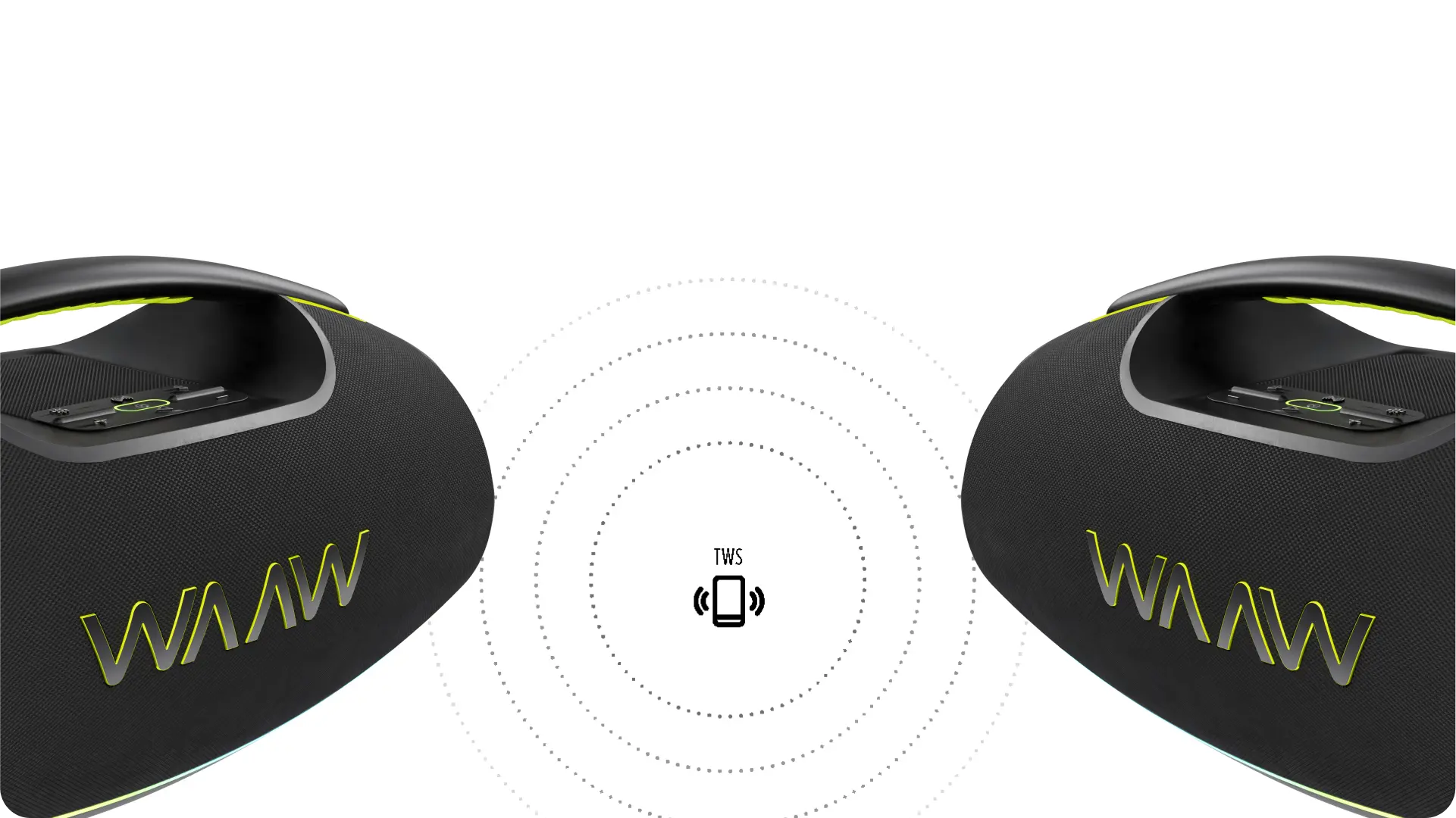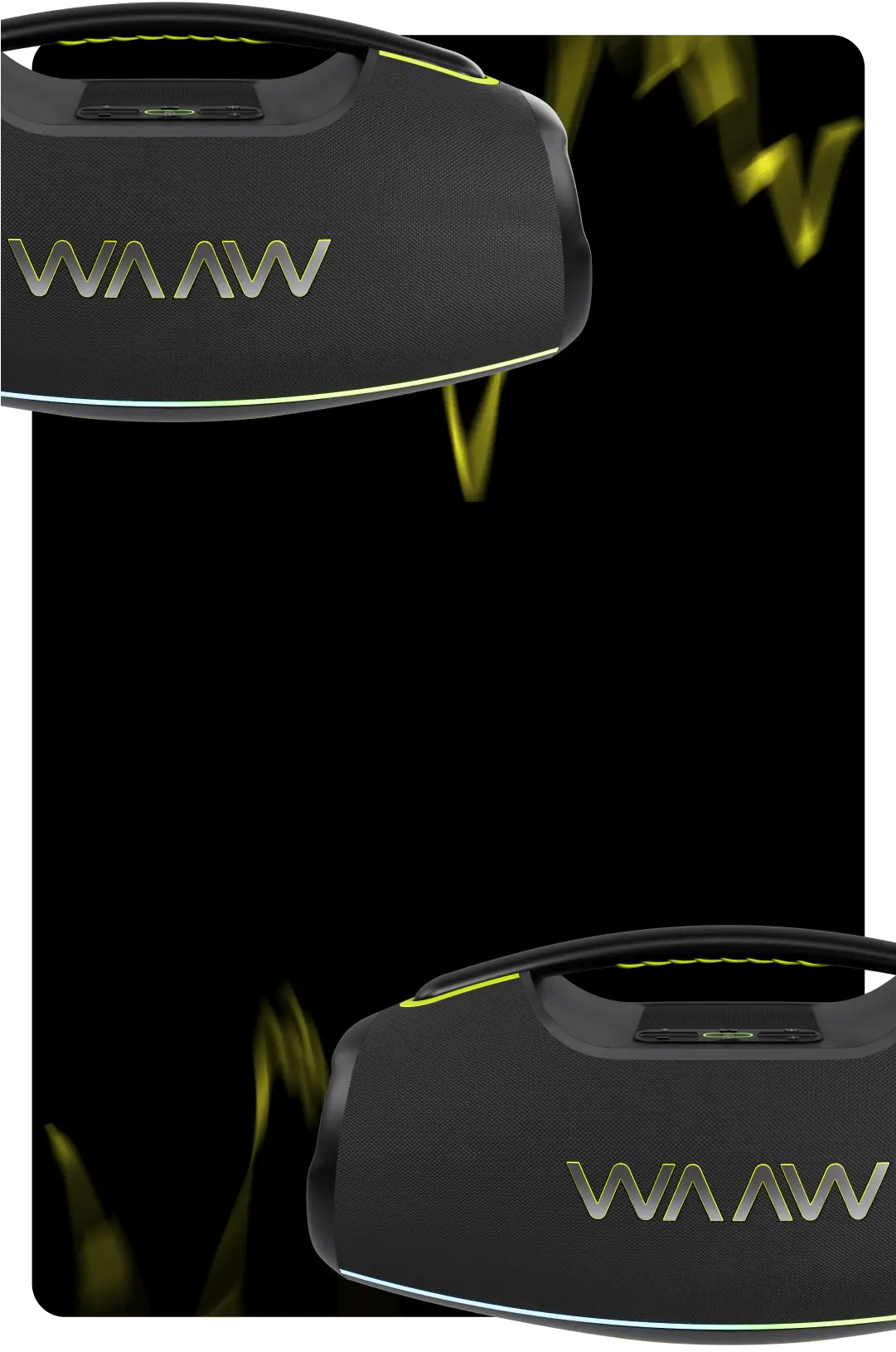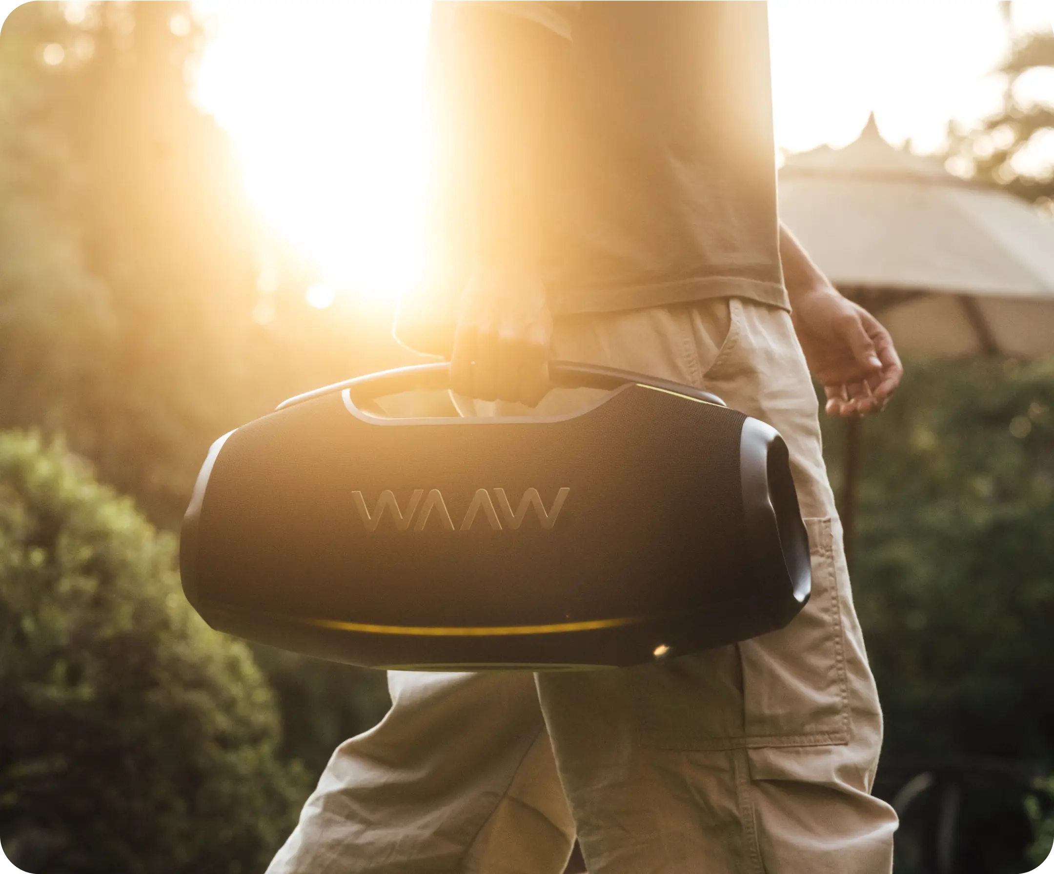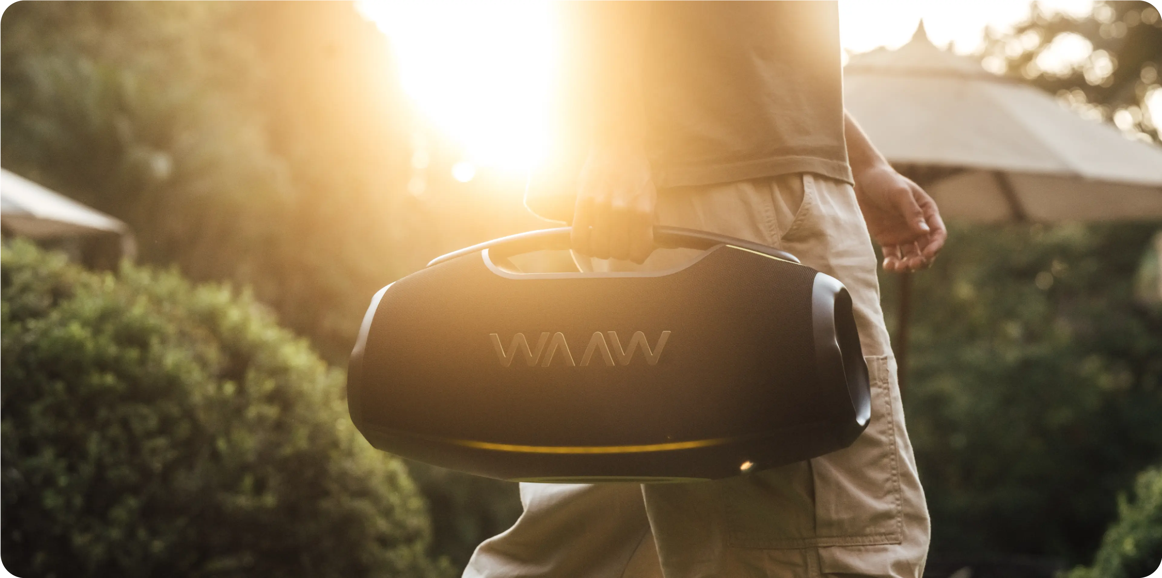 Amplifique o som para uma festa épica mais vibrante! Com a WAAW HYPERBOOM 1000, a música não para após o play. Quem tá junto de verdade, tá junto a qualquer hora.