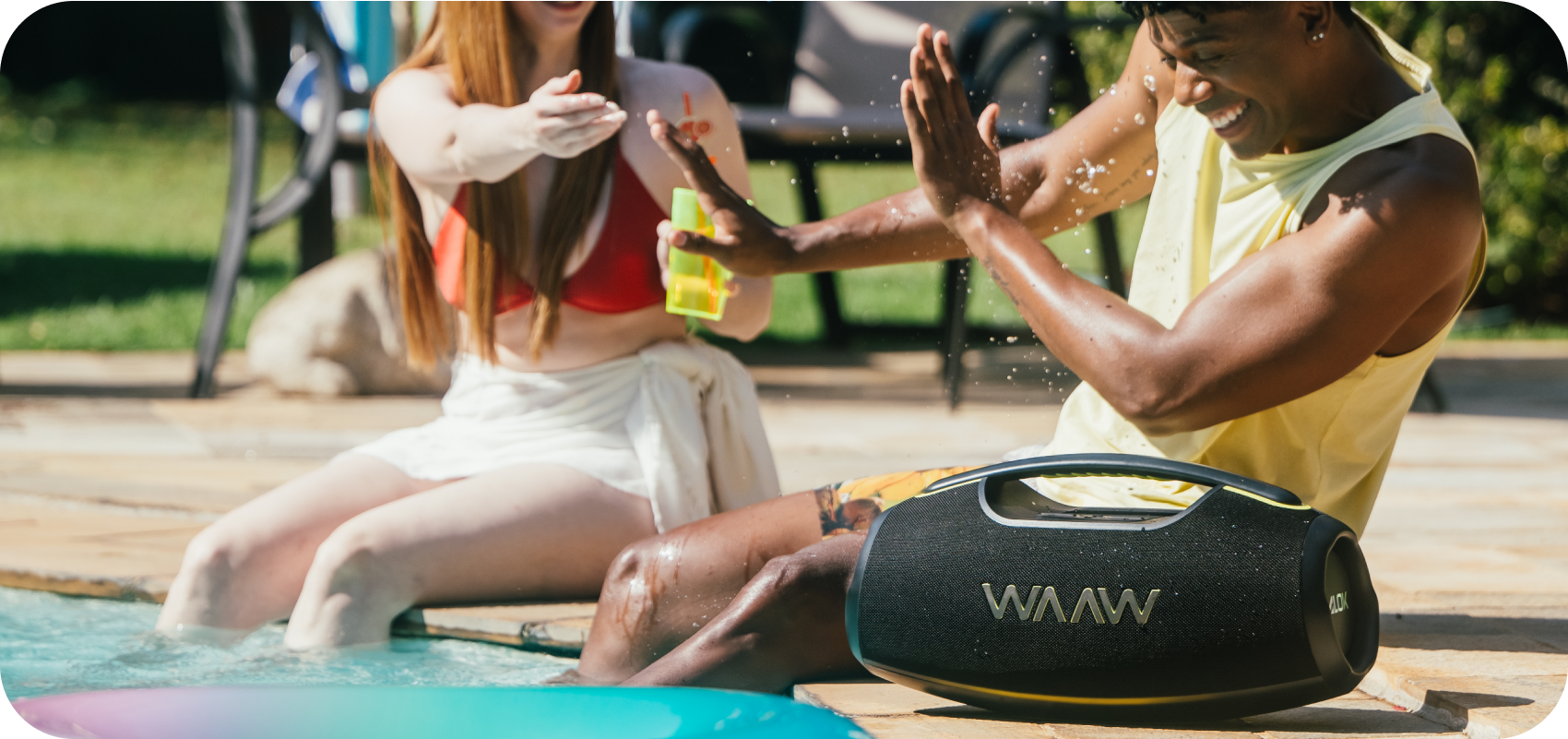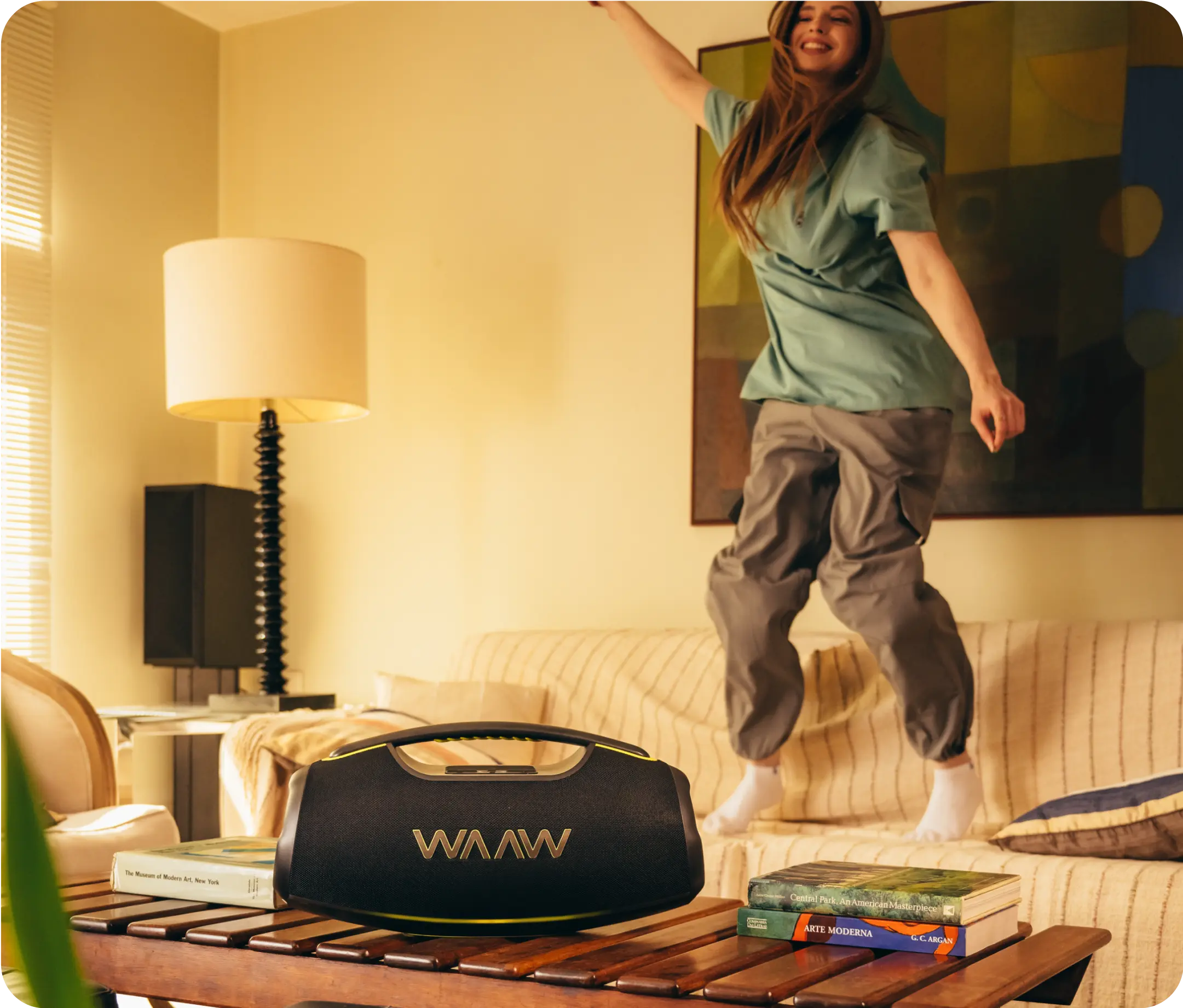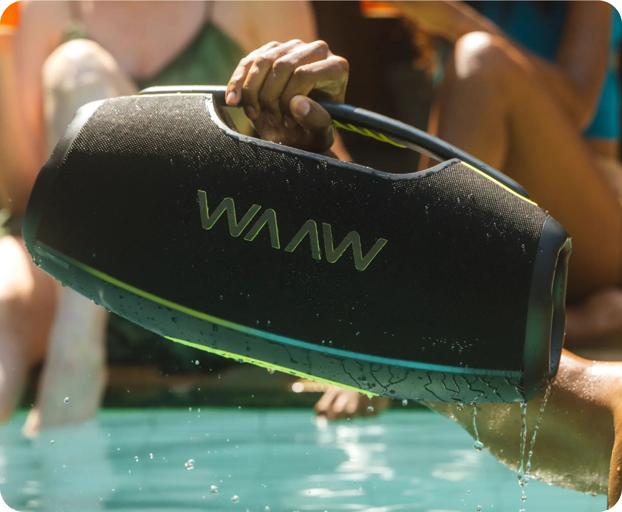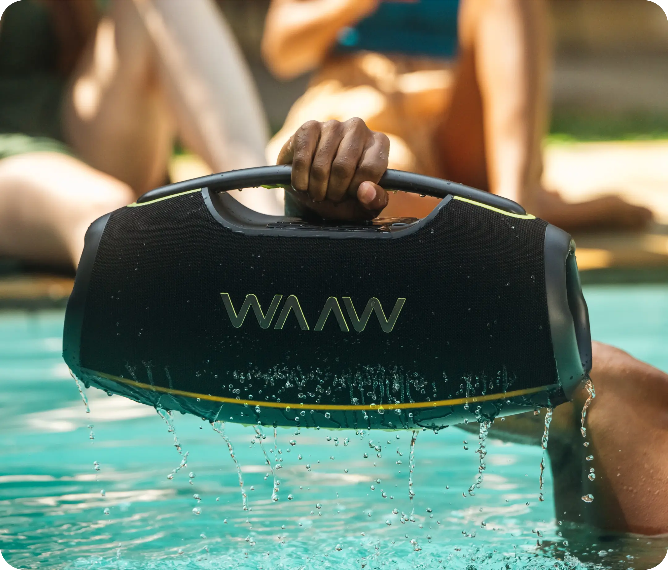 Amplifique o som para uma festa épica mais vibrante! Com a WAAW HYPERBOOM 1000, a música não para após o play. Quem tá junto de verdade, tá junto a qualquer hora.