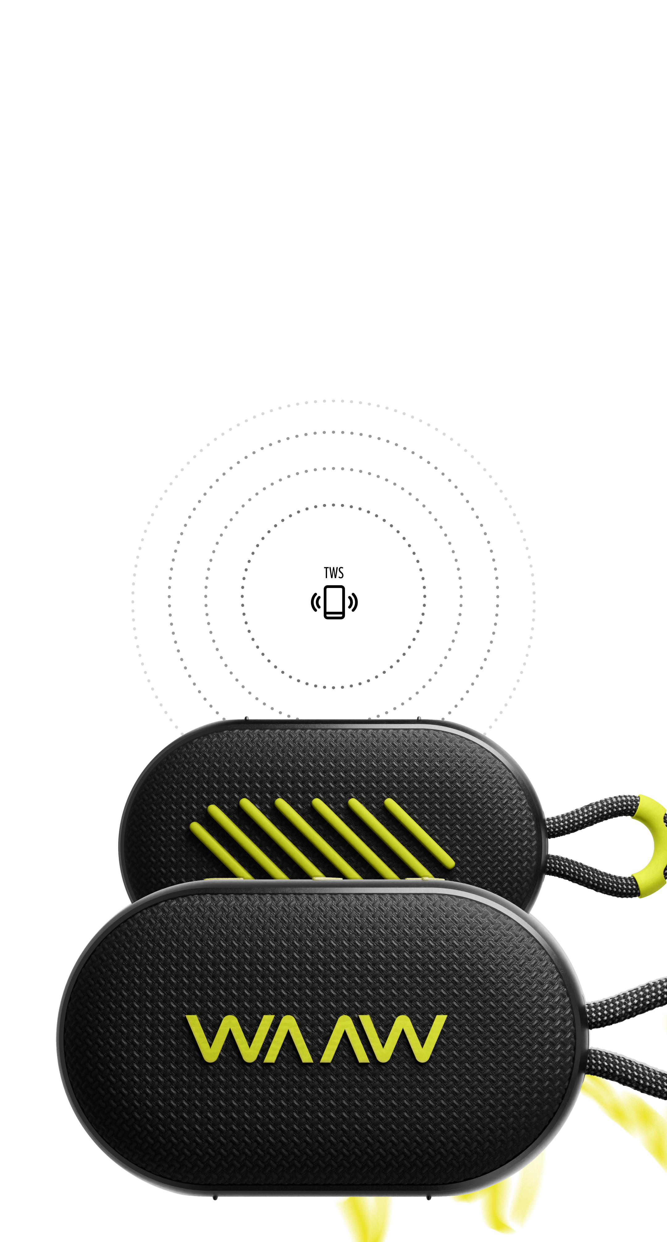 O WAAW Plus com tecnologia TWS permite conectar até duas ME 110 simultaneamente via Bluetooth, criando uma experiência de som ainda mais imersiva. Seja no rolê com a galera ou nos momentos relax em casa, a música vai invadir o ambiente e te fazer dançar.