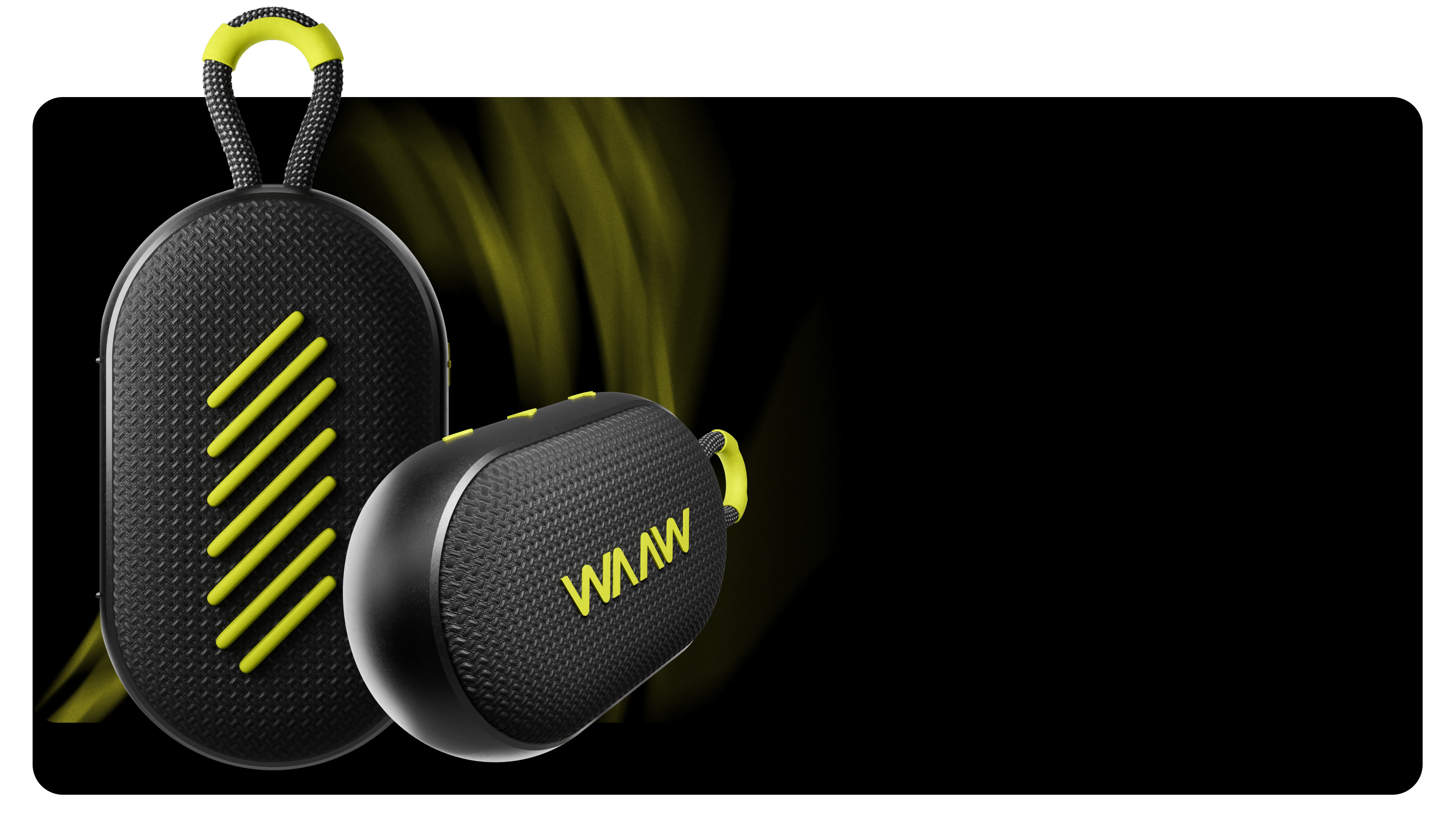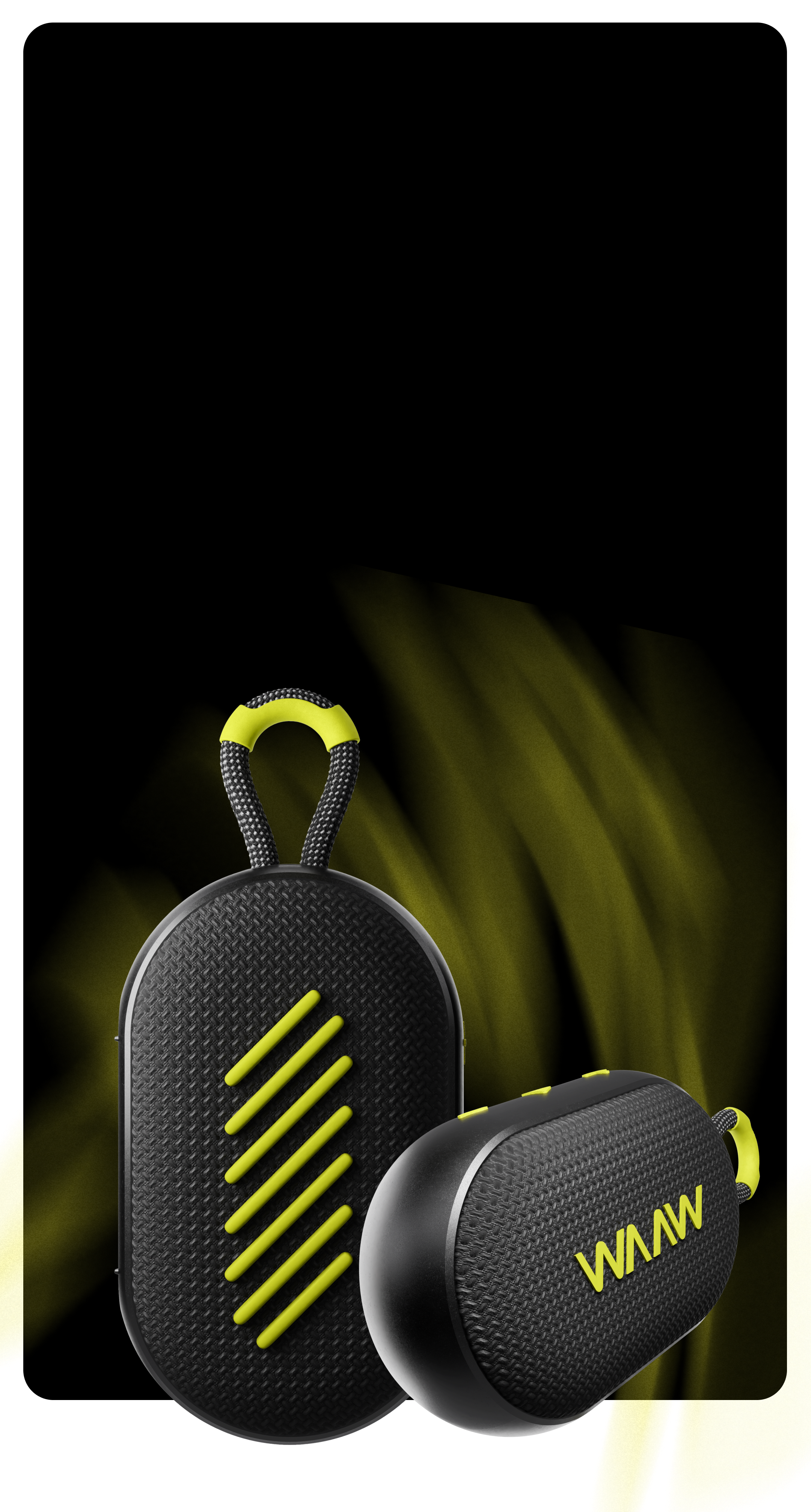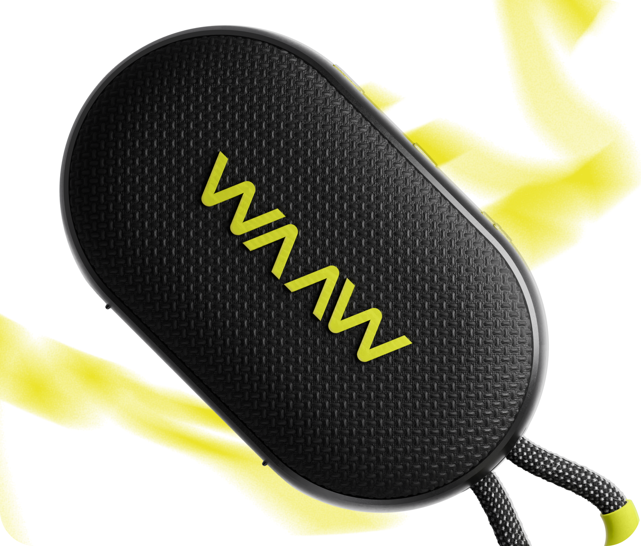 O design portátil, leve e fácil de transportar acompanha você a qualquer lugar. Sua alça resistente facilita na movimentação entre ambientes, enquanto também pode ser utilizada para fixá-la onde quiser. E não importa a aventura, a caixa de som WAAW é à prova d’água, com classificação IPX7, garantindo que playlist continue rolando.