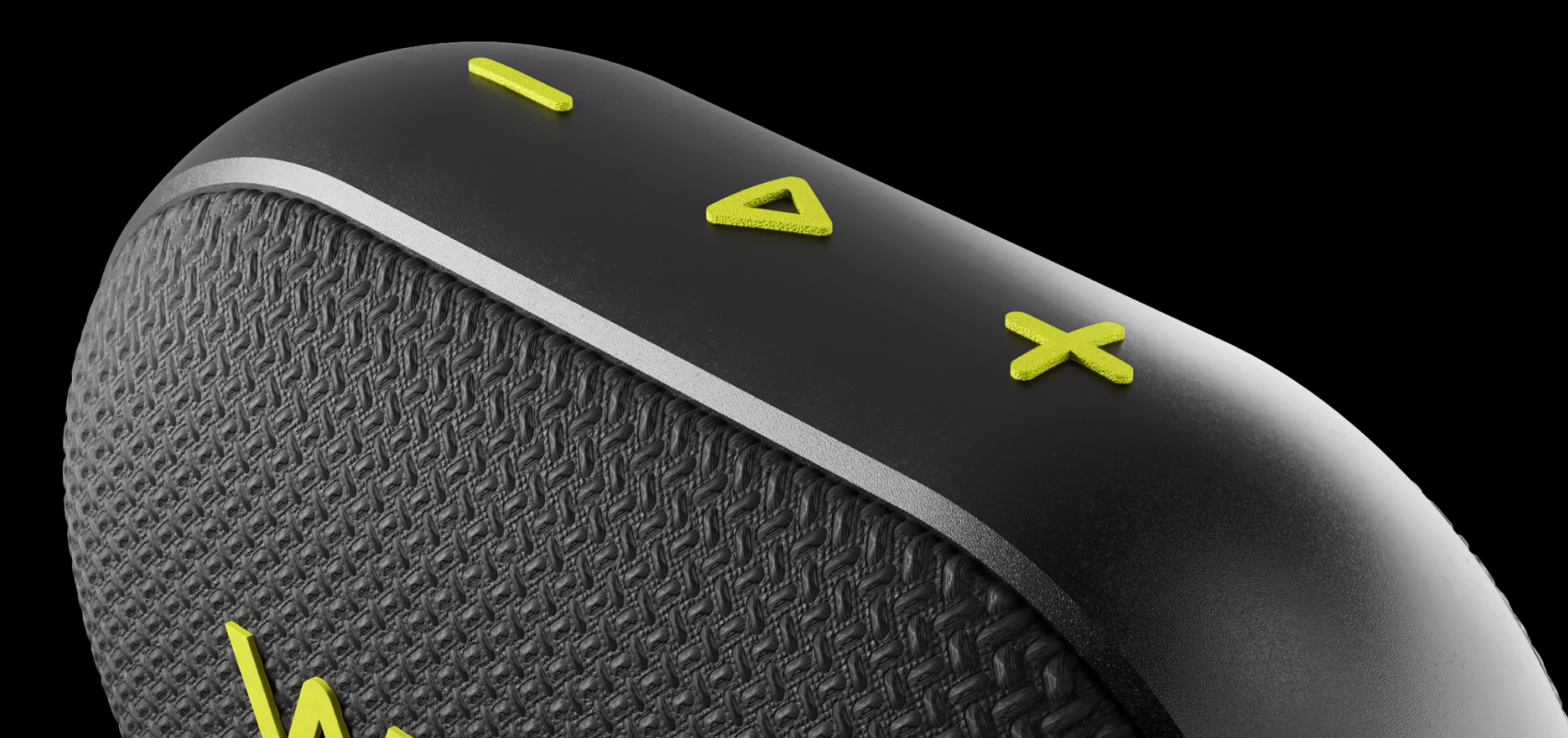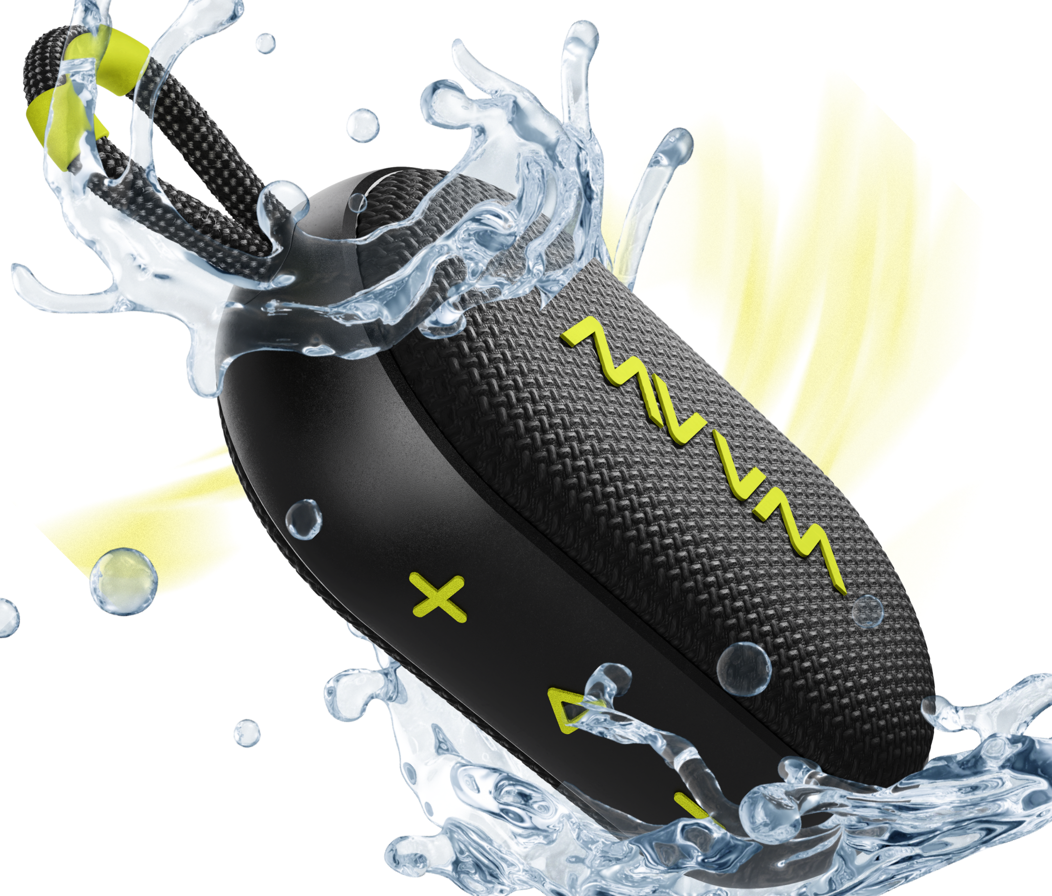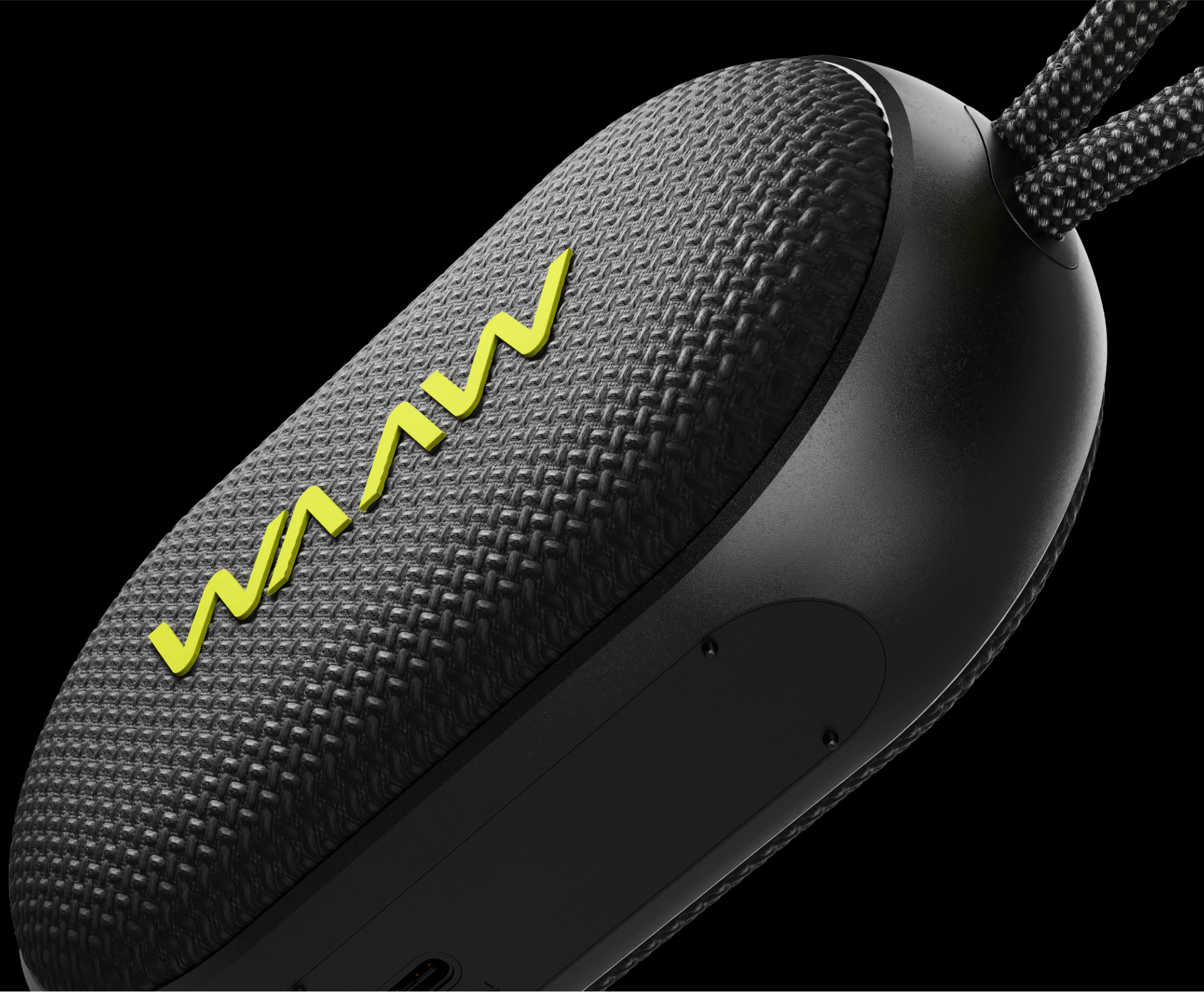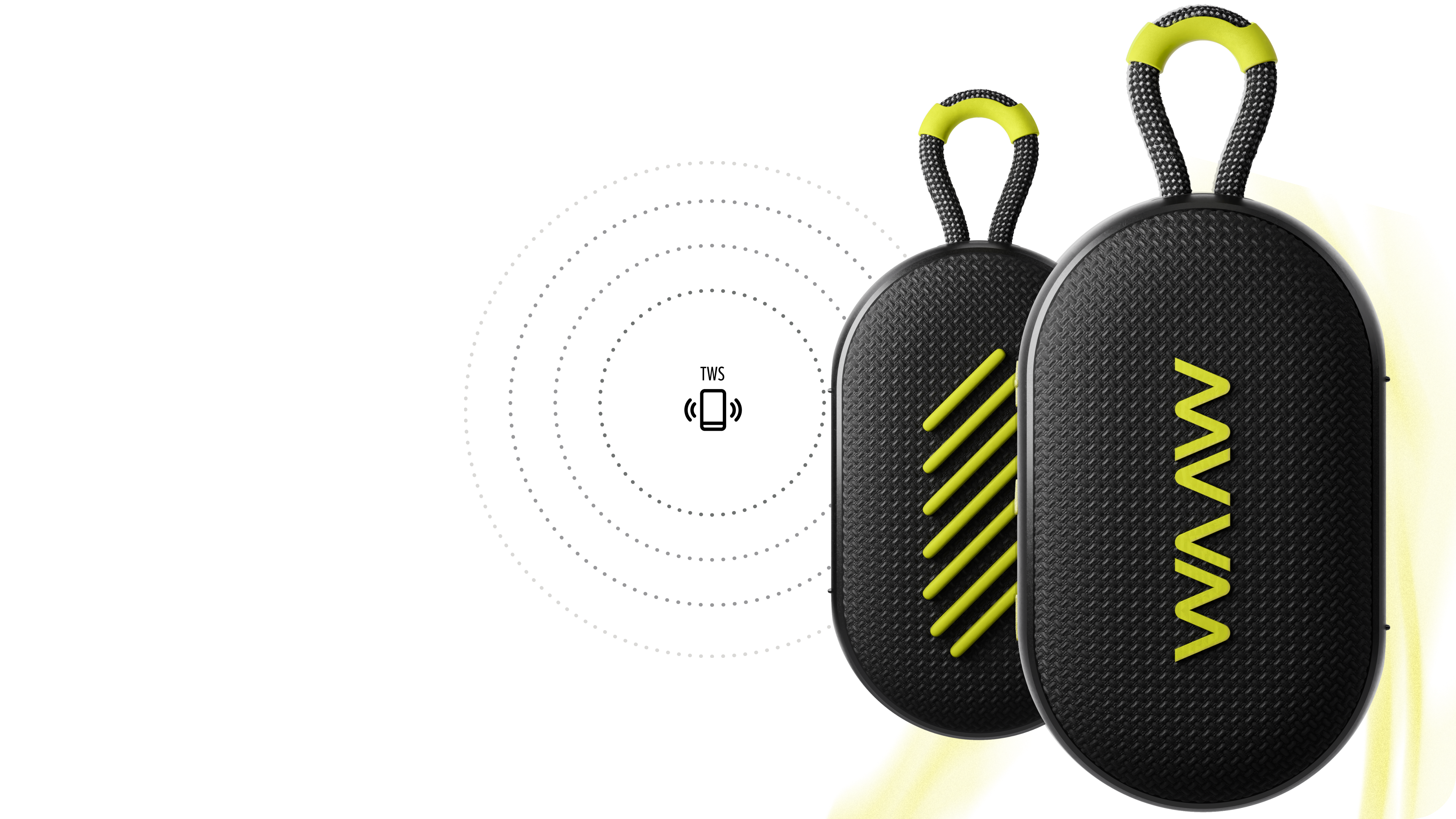 O design portátil, leve e fácil de transportar acompanha você a qualquer lugar. Sua alça resistente facilita na movimentação entre ambientes, enquanto também pode ser utilizada para fixá-la onde quiser. E não importa a aventura, a caixa de som WAAW é à prova d’água, com classificação IPX7, garantindo que playlist continue rolando.