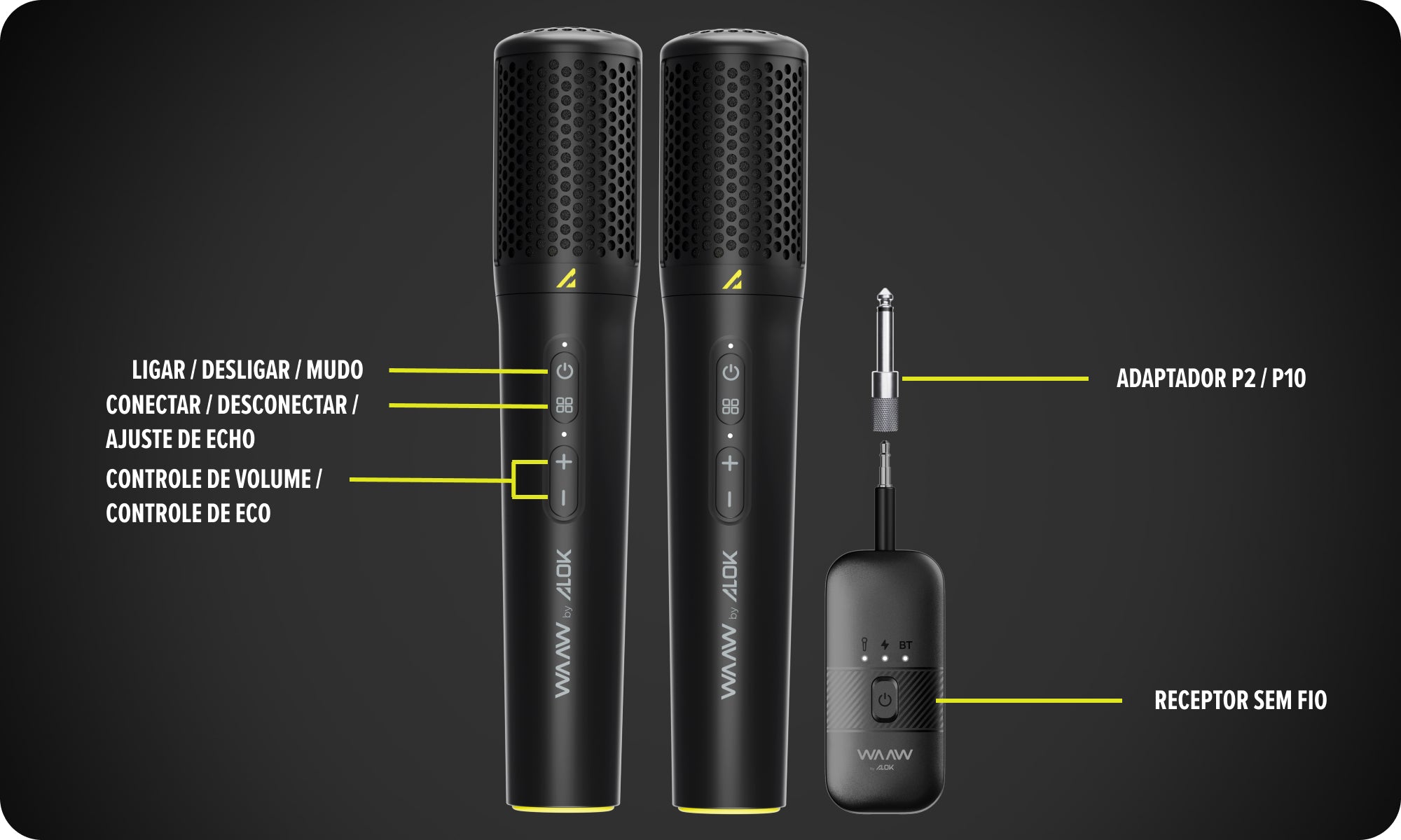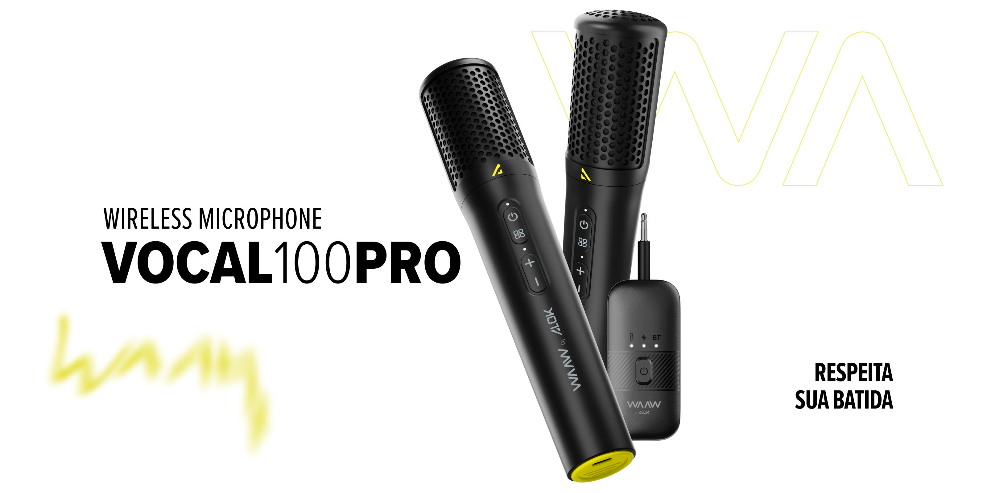 Com o Microfone Wireless WAAW VOCAL 100 PRO, sua voz assume o ritmo. Potência, autonomia e liberdade para transformar qualquer momento em show.