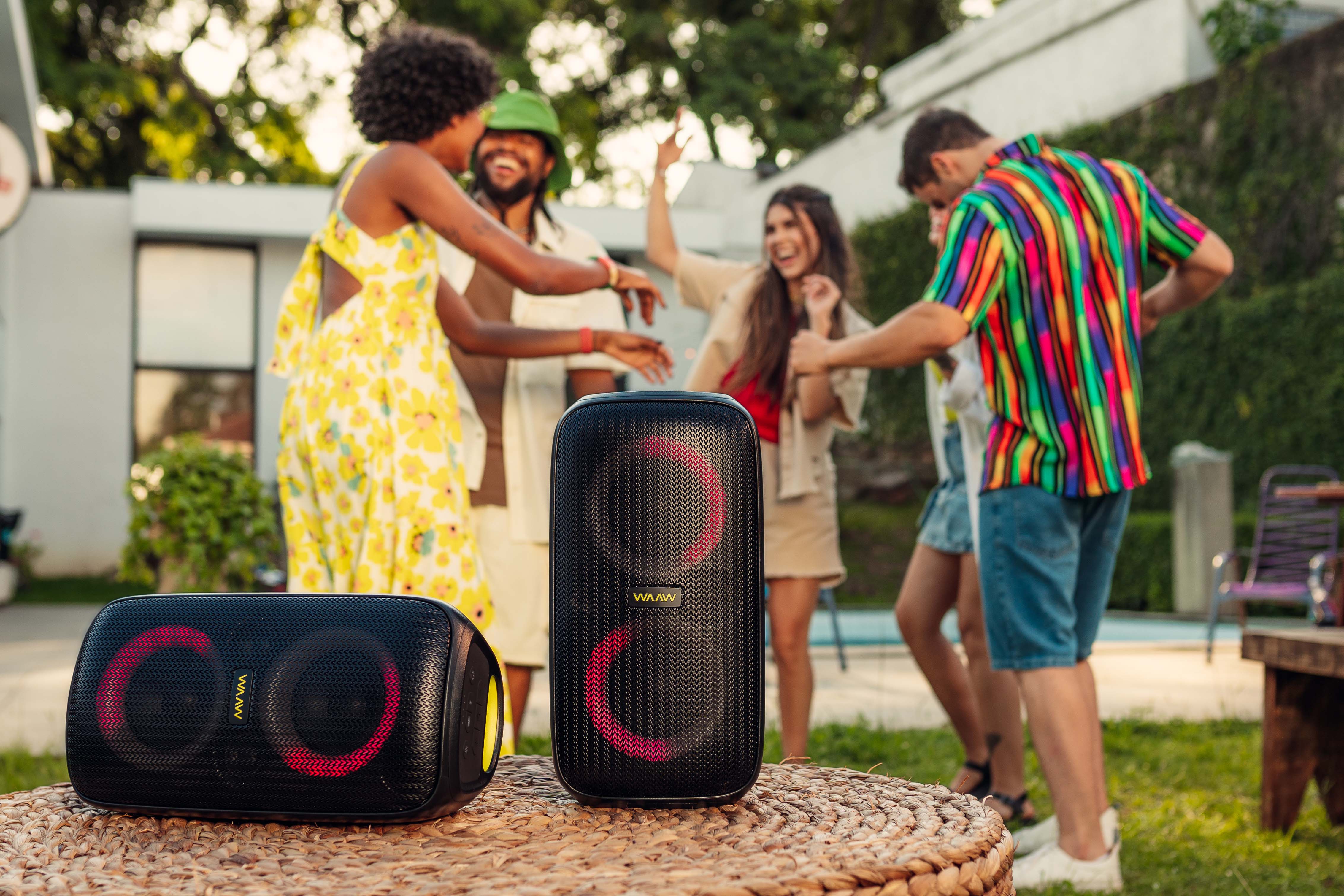 Sinta a batida das suas músicas favoritas toda vez que apertar o play. Com uma impressionante potência de 100W RMS, a Caixa de Som WAAW INFINITE 100 garante que cada som preencha o ambiente de maneira envolvente e imersiva.