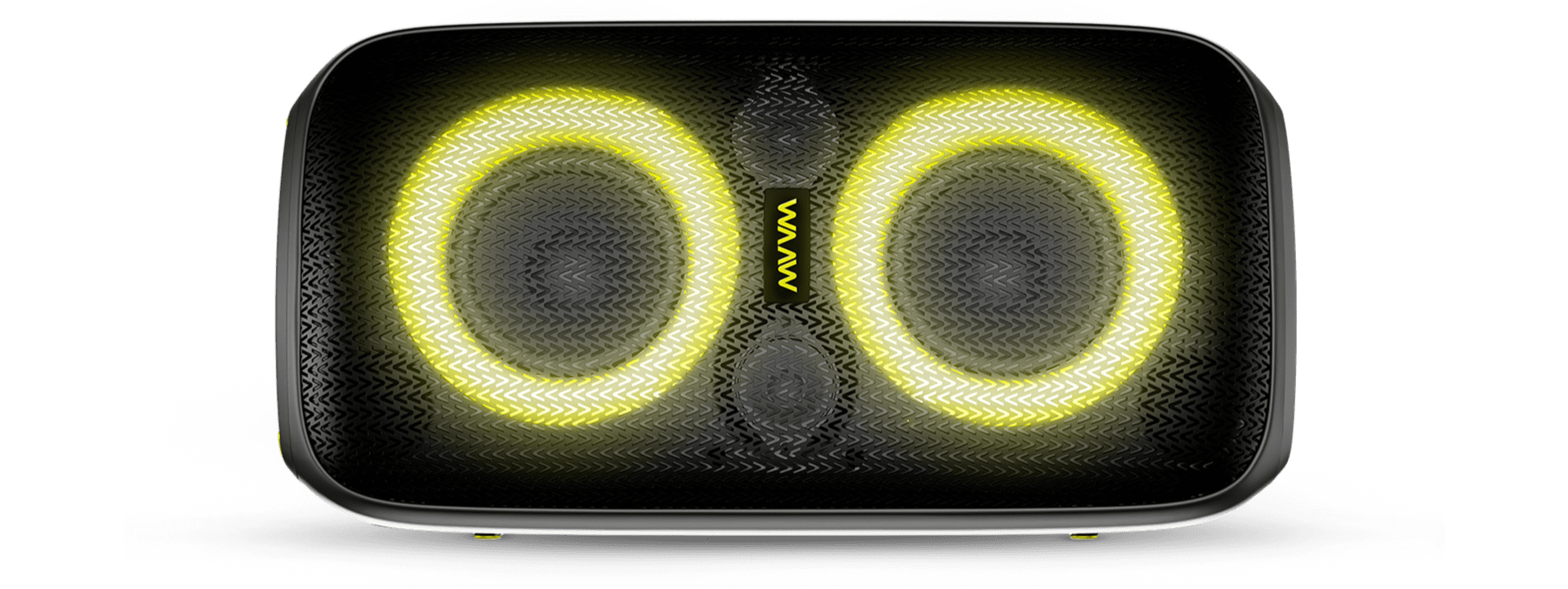 A tecnologia True Wireless Stereo (TWS) permite que você conecte duas caixas WAAW INFINITE 100 via Bluetooth, para ter um som ainda mais expansivo. Leve sua festa a outro nível, preenchendo o ambiente com ondas sonoras que envolvem todos que estão presentes.