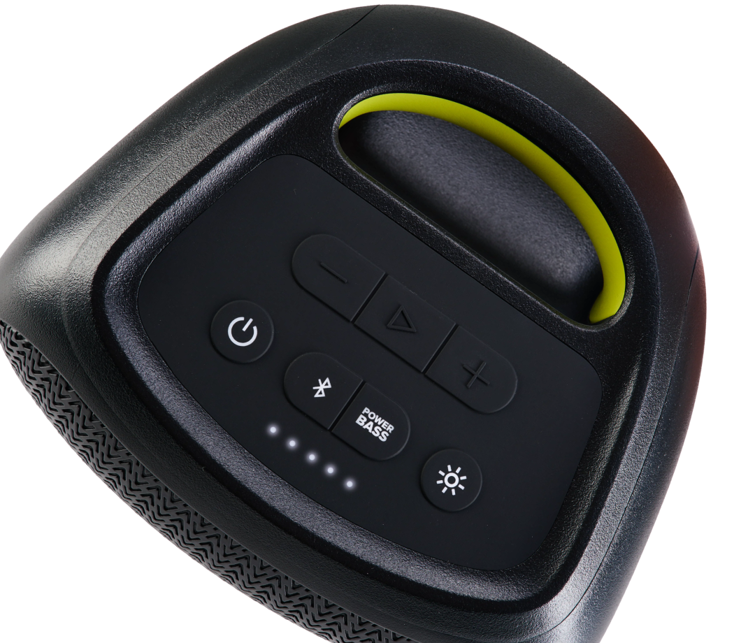 Equipada com quatro alto-falantes de alta qualidade, incluindo 2 tweeters e 2 full ranges, oferece mais clareza em todas as frequências, desde graves profundos até agudos cristalinos. Com o Botão Power Bass, a caixa de som conta com um recurso poderoso que intensifica os graves, proporcionando batidas mais fortes e perceptíveis. Sinta cada nota, cada batida, como se estivesse no coração da música.