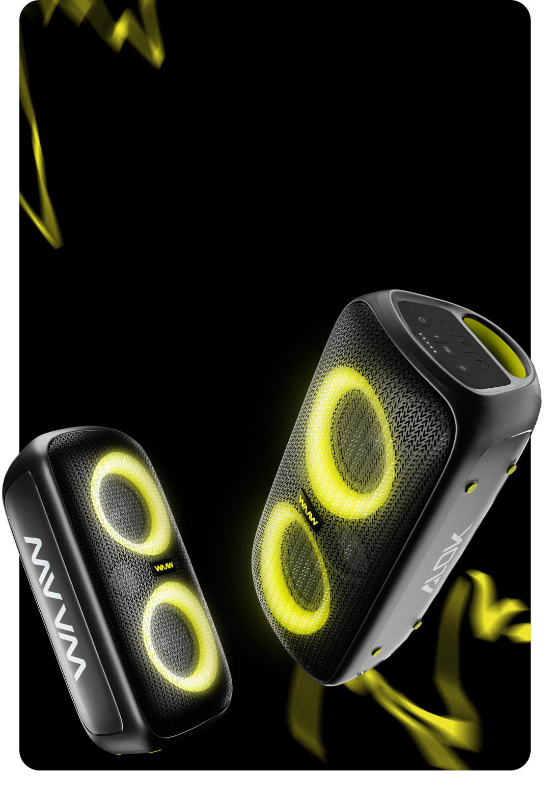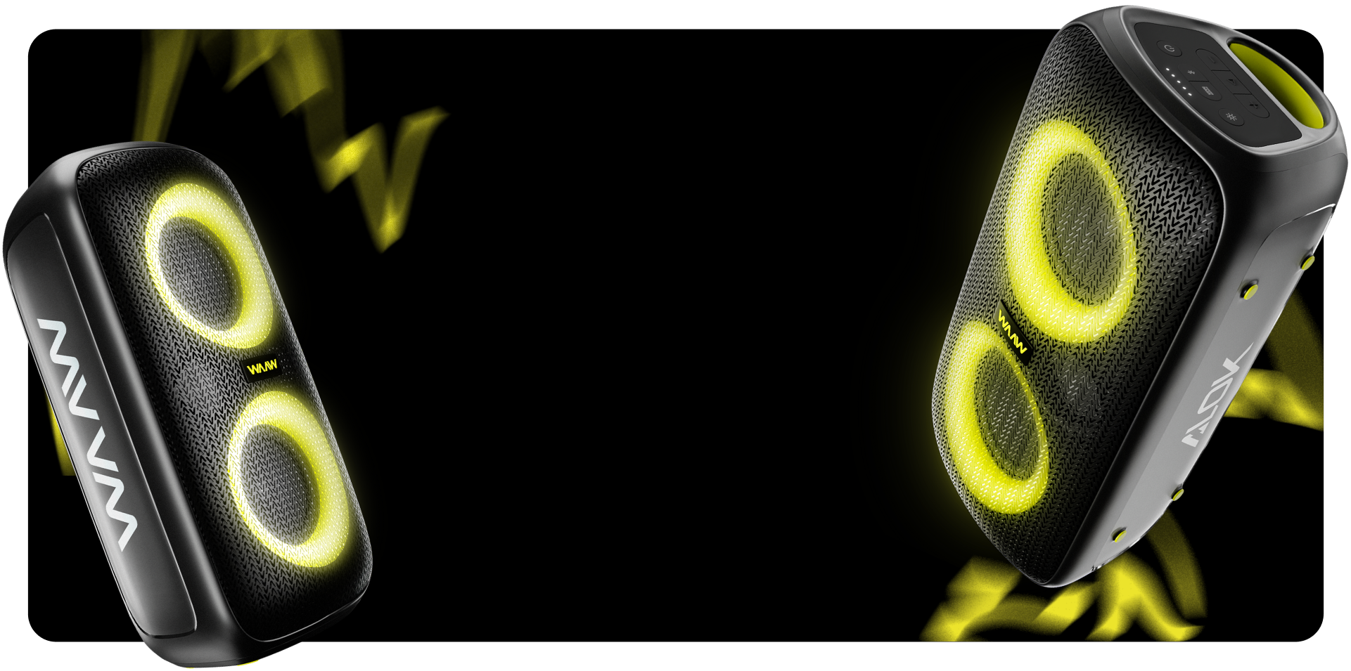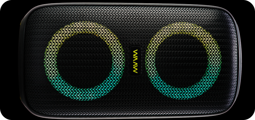Sinta a batida das suas músicas favoritas toda vez que apertar o play. Com uma impressionante potência de 100W RMS, a Caixa de Som WAAW INFINITE 100 garante que cada som preencha o ambiente de maneira envolvente e imersiva.