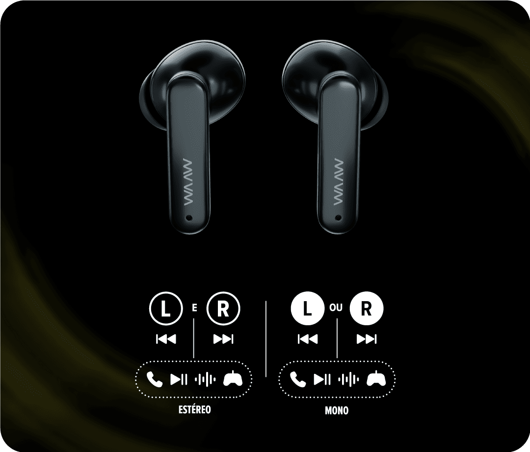 A tecnologia TWS oferece uma comunicação sem atraso entre o dispositivo e o fone, garantindo uma jogabilidade precisa e suave em jogos em tempo real.