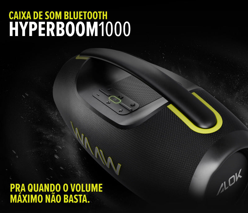 Tecnologia TWS que conecta até duas caixas BOOM 200 via Bluethooth; Bluetooth 5.3; Até 12 horas de música; Classificação de proteção IPX4; 3 alto-falantes.Caixa de Som Bluetooth Boombox WAAW Hyperboom 1000